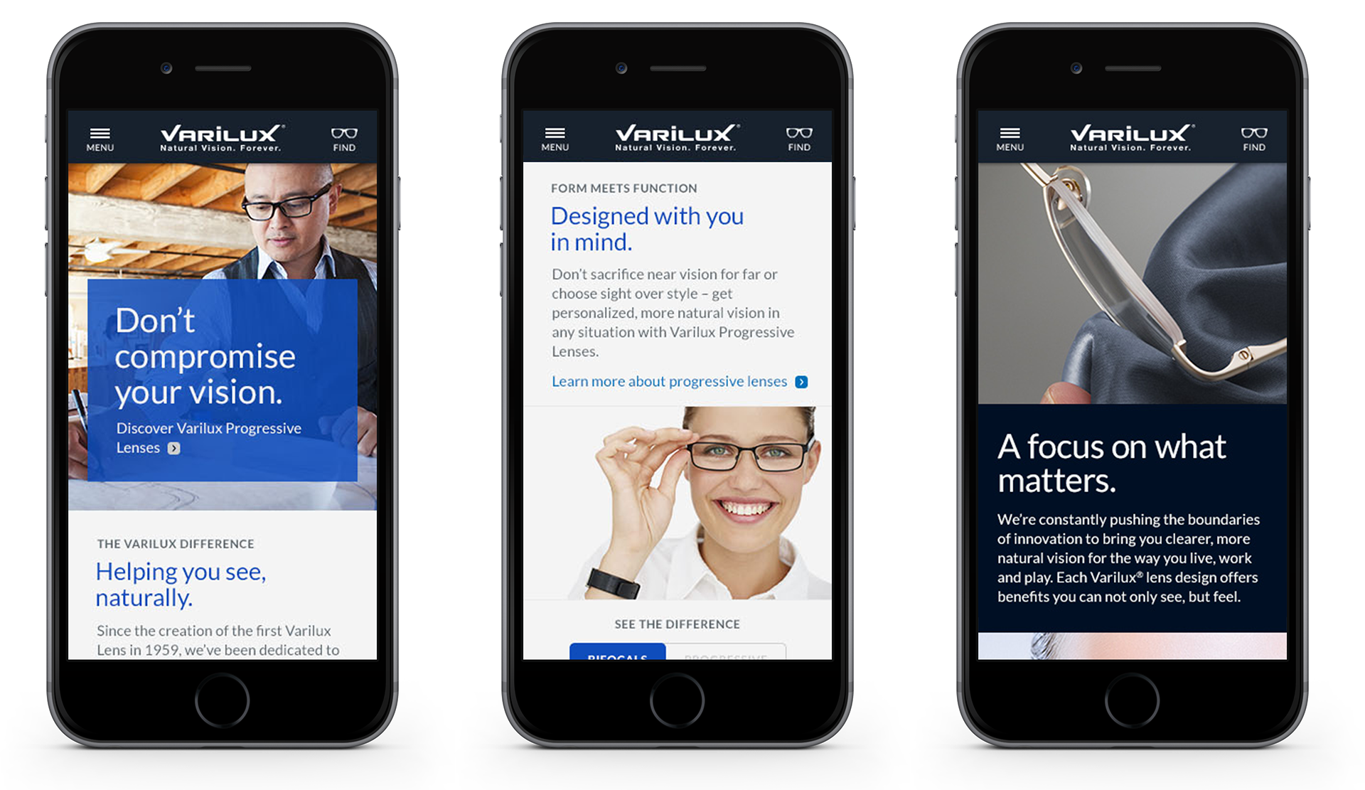 Varilux is a major brand of progressive lenses. I was responsible for creating — and supervising the creation of — deliverables ranging from comps and creative concepts to the final, developed site. This redesign also served as the template for all other brands held by Essilor, the parent company of Varilux.